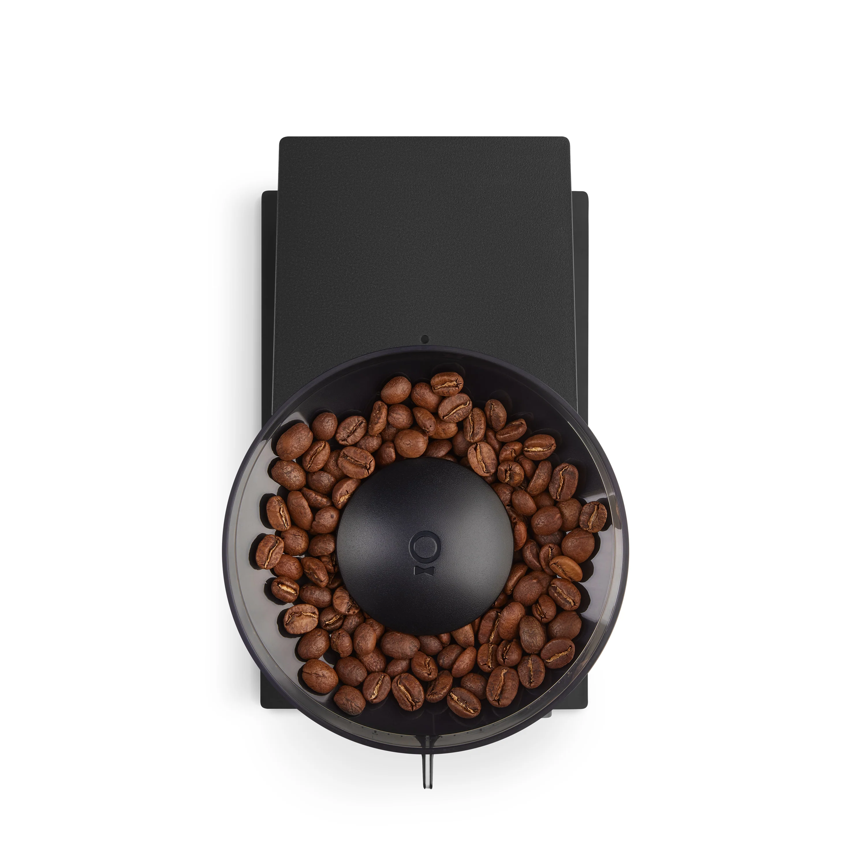 Finishing touches include the variable grounds catch bin which features a shaped inner wall that forms a spout for easy pouring and a portafilter attachment for traditional grind and flip dosing. The base also attaches magnetically to the base beneath the grinds chute which feels both secure and satisfying. For maintenance, the bean hopper twists off with ease and a collapsible handle allows the top burr to be removed in seconds with no screws or assemblies to contend with.